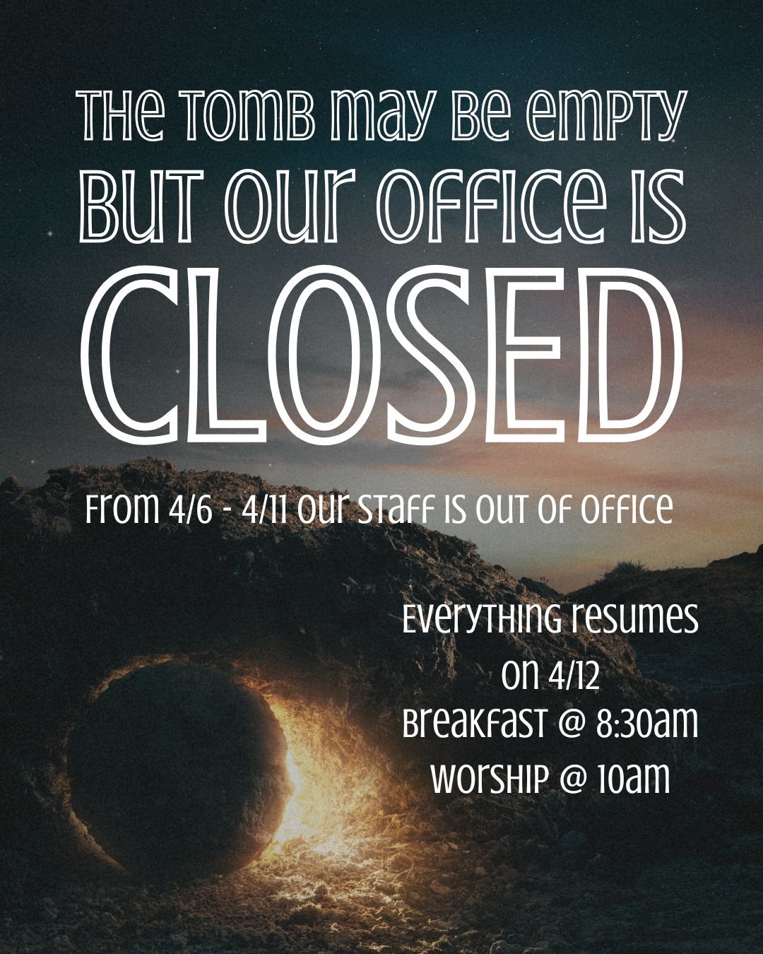 Mark Calendars - Noon Day Prayer Service will be on hiatus April 8 and will return to regular schedule on April 15.