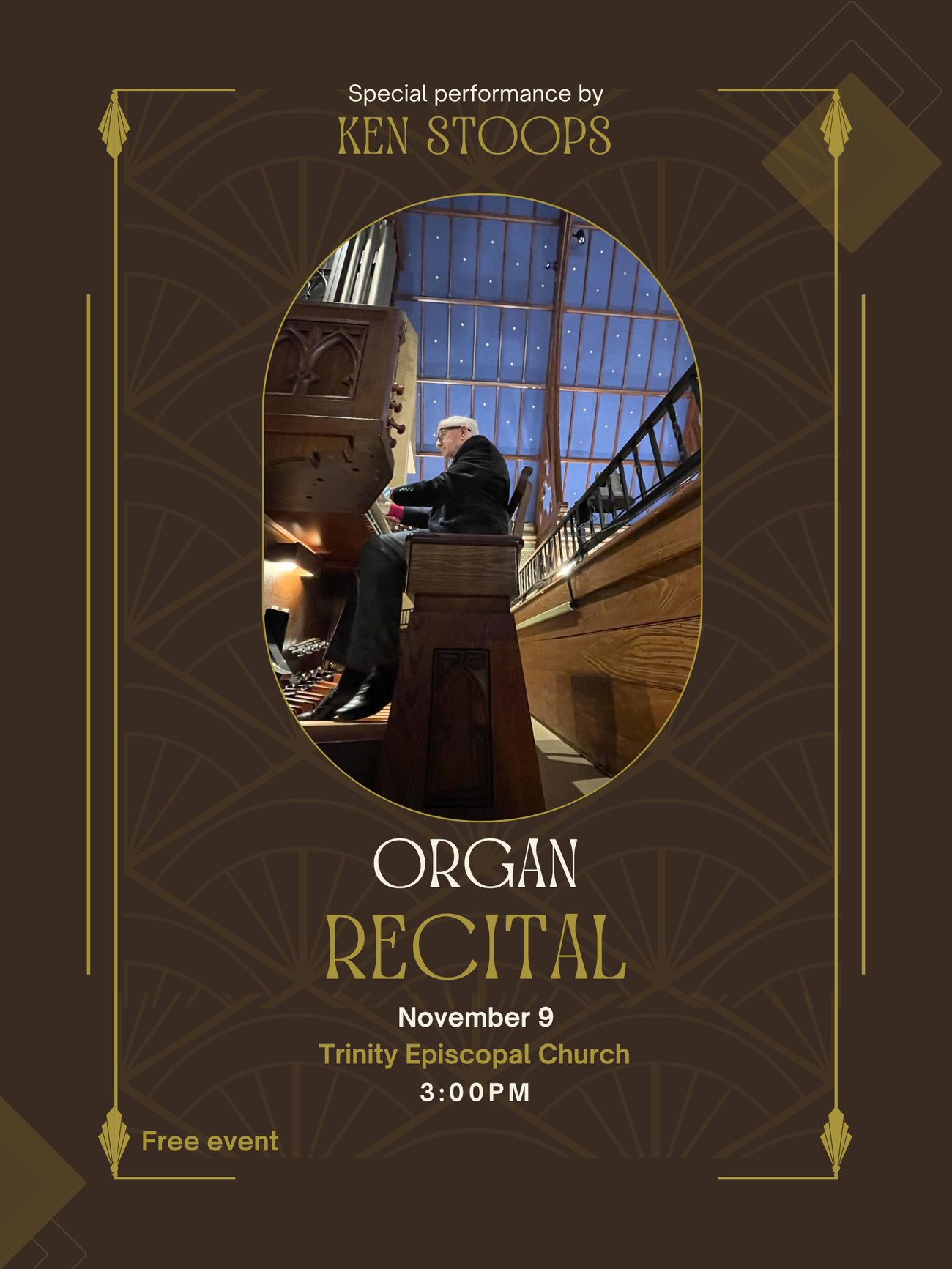 Treasured Trinity organist, Ken Stoops, will be performing at Trinity on Sunday, Nov. 9th at 3:00pm, as part of the Music & Arts series. With over 40 years of parish organ music ministry, Ken is a wealth of knowledge and talent sure to dazzle and delight organ enthusiasts of all levels. This concert is free to our Toledo community. Parking will be validated for guests using the Four SeaGate Parking Garage. Come and enjoy a lovely afternoon with us!