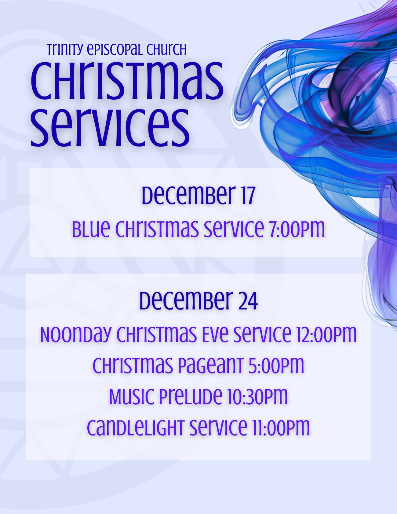 Starting in January, our siblings at All Saints Episcopal will be hosting a commodities pantry that will run from 11:30a - 1pm the first and second Sunday of the month. Trinity is very excited to be supporting this pantry, so please drop of toilet paper, paper towels, toothbrushes, toothpaste, soap, and feminine hygiene materials at the donation station by the guestbook podium. If you have any questions, please contact George Benson at george@trinitytoledo.org